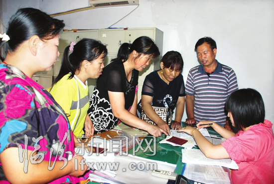 6月初,翼城县有5万农民受益新农合补贴近1000万元,其中住院补贴835余万元,门诊补贴101余万元。图为翼城县农民群众正在办理新型农村合作医疗补贴手续。 见习记者 李自强 摄
