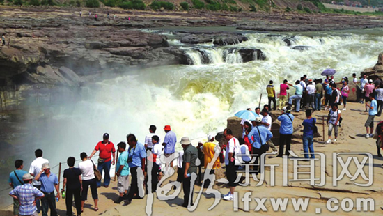 7月4日,面对清澈透亮的壶口瀑布,国内外游客无不惊讶:“电视画面、摄影作品表现的壶口之水不是这样啊!”壶口景区管理委员会副主任李明说,水之所以会变清,是因为天旱少雨,上游降水量减小,水的流速带动不起泥沙。这是今年壶口水第三次变得清亮了。 记者 王隰斌 摄