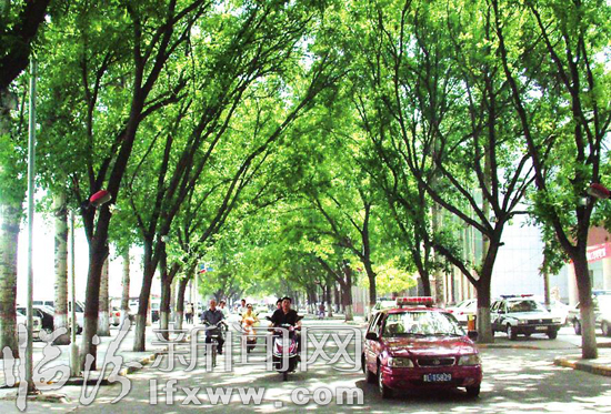 近年来,侯马市投资15亿元,实施紫金山浍河大桥、路西旧城改造等一批基础设施建设工程,新增市区绿化面积92.5万平方米,城市绿化覆盖率从38.5%提高到40%。图为市区“林荫大道”——市府路。 秦明忠 摄
