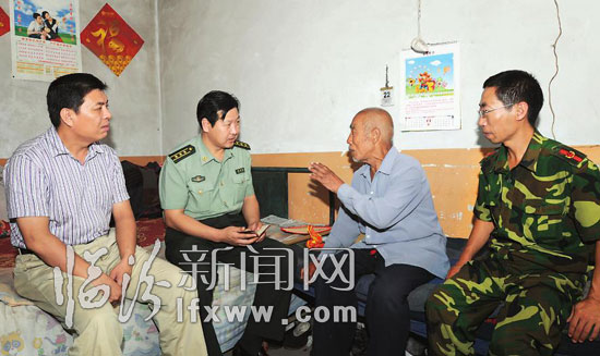 多年来,襄汾县人武部把军烈属的工作放在重要位置,积极为军烈属解决生活中的实际困难,该县人武部的干部职工也被军烈属亲切地称为“我们的娘家人”。图为“八一”建军节前夕,该县人武部领导看望了解放前的革命老军人。 本报记者 赵俊堂 摄