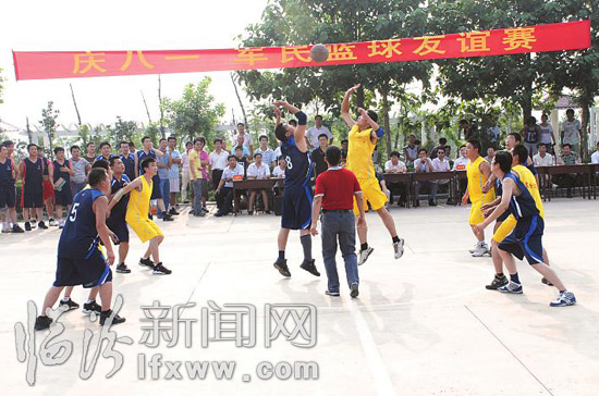 | 为迎接“八一”建军节的到来,创建新型军政、军民关系,襄汾县举办了迎“八一”篮球友谊赛,采用运动强身的健康方式,军民同庆建军节,在运动中增进军民鱼水情。图为比赛现场。 郑少婕摄 |