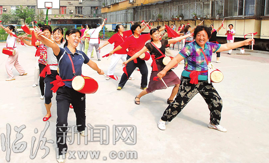 连日来,我市社区街道及各级工会组织群众加紧排练文艺节目,以不同的方式迎接新中国成立60周年。图为我市平阳社区地质小区的腰鼓队在排练节目。 本报记者 闫锐鹏 摄
