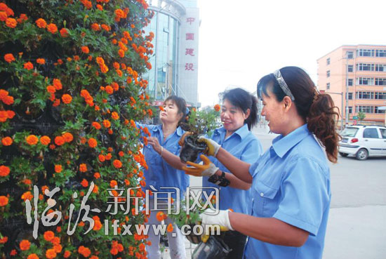 今年以来,翼城县以“创建省级最佳宜居城市和全省最佳人居地”为目标,积极开展县城主要街道实施立体组合式绿化工程,以提高城市绿化面积。图为翼城县城建局工作人员正在更换立体花柱上的鲜花。 本报记者李自强摄