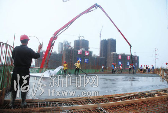尧都区恒安房地产开发项目是我确定的“双百”重点工程之一,在工程现场工人们正在按照预先设计的施工方案规范施工,以确保工程高质量、高标准如期完工。 本报记者李自强摄