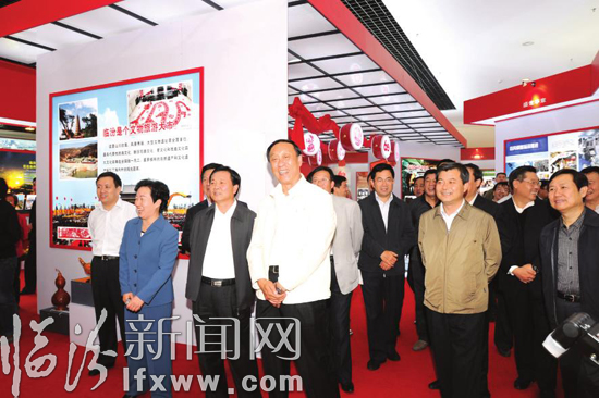 步入展区中央,谢海、罗清宇、刘合心、常富顺分别上前,用双槌擂响大鼓,以振声威。在解说员的引导下,市领导详细观看了以“崛起中的临汾”为主题的展区。他们通过参观展示我市发展历史的“沧桑巨变”、“流金岁月”、“盛世华章”和“再铸辉煌”四个篇章,以及照片、实物,深入了解了各行各业的发展成果和杰出人物,并对展区的布局和展示效果给予了充分肯定。