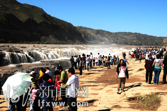 瀑布近前人流如潮。临汾新闻网记者 张天斌 摄