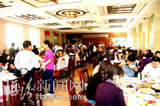 我市景区唯一的三星级酒店“壶口瀑布大酒店”饭厅吸引大批游人就餐。 临汾新闻网记者 张天斌 摄