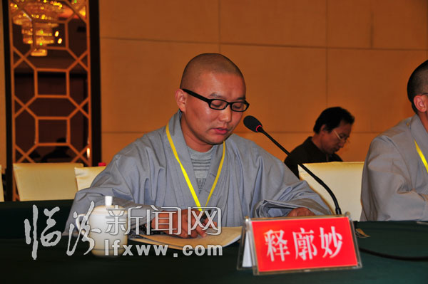 山西代县白人岩寺住持释廓妙法师在研讨会上宣读论文。