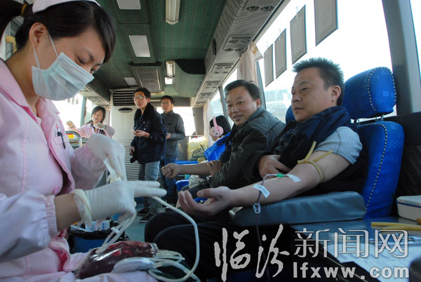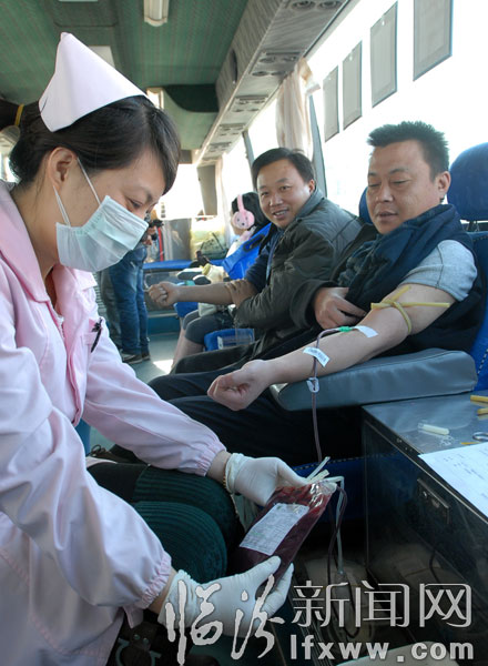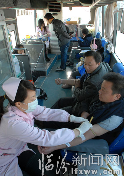 临汾新闻网讯 11月17日,在临汾市鼓楼广场流动献血车上,市民在踊跃献血。自临汾市出现降雪天气和大幅度降温以来,临汾市中心血站的存血量频临接近警戒线,血站血源“告急”的情况通过短信和电话的方式向社会发出消息后,市民纷纷捋袖,踊跃献血。 临汾新闻网记者 闫锐鹏 摄影报道