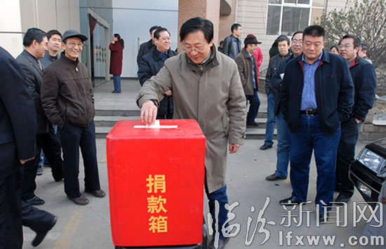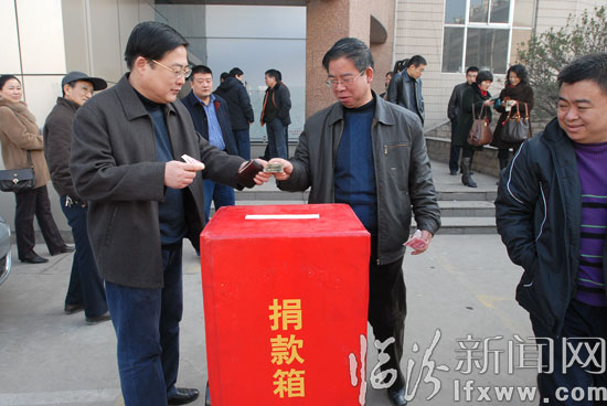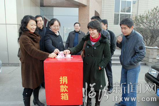 临汾新闻网讯 12月2日,临汾日报干部职工在参加送温暖、献爱心捐助活动。我市发出向受灾和贫困群众“送温暖,献爱心”社会捐助活动倡议后,临汾日报各部室踊跃参加,奉献爱心,为受灾和贫困群众送去冬日里的温暖。本报记者 闫锐鹏 摄