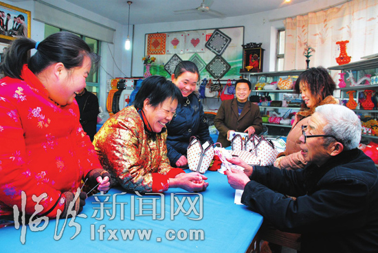 “一个大钱包加工费5元,一个小钱包加工费3元,我一天能编3个大的,5个小的”,在曲沃县民办新潮职业技术学校里,高县上家村妇女张红霞高兴地告诉记者。新潮职业技术学校开展的编制班吸引了400多名农村妇女从事手工艺品加工。该学校不仅教编织技术,而且还收购成品,为当地妇女提供了一条致富增收的渠道。 本报记者 李自强 摄