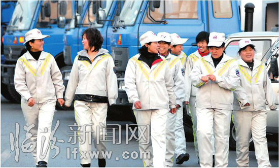 12月22日拍摄的临汾市环卫局女子机动保洁中队队员。当日,我市首支女子机动保洁中队正式成立,该中队由40名女队员和23辆新型保洁车组成,服务于城区主干街道和小巷的保洁和垃圾清运。本报记者 闫锐鹏 摄