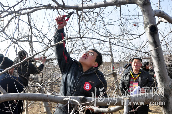 2010年1月12日,大学生村干部在进行果树修剪比赛。