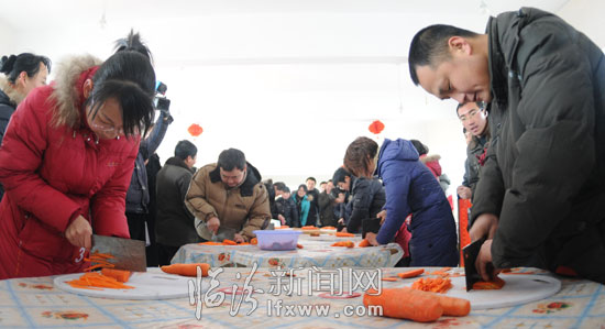 2010年1月12日,大学生村干部在进行切菜比赛。