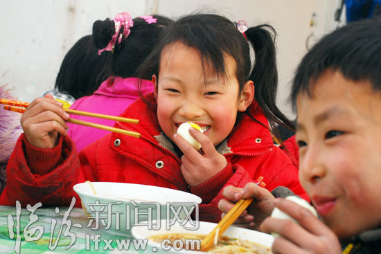 学生正在吃鸡蛋。