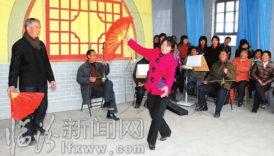 1月10日,襄汾县新城镇闫店村的村民正在排演节目。冬闲时节,该村积极引导村民参加文化活动。健康向上的文化活动使村民们冬闲不闲,陶冶了情操,锻炼了身体。 记者 闫锐鹏 摄