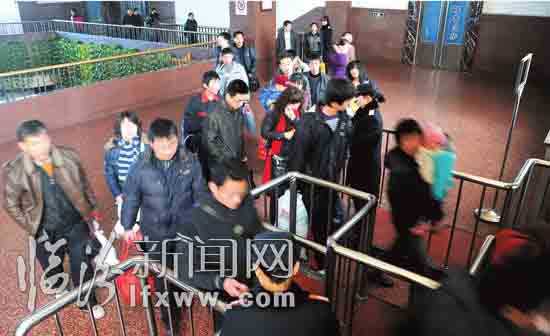 1月30日,临汾火车站党委书记李伟告诉记者:由于学生已经放假,加上农民工比往年少,今年春运客流高峰会比往年晚。”为了确保广大旅客走得好、走得满意,我市公路、铁路等有关部门加强组织,强化管理,全面部署。记者29日、30日探访了春运一线,秩序井然,客流量不大。(本报记者 李虎威 摄)