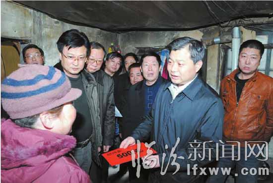 新春佳节到来之际,市委副书记、市长罗清宇带着党和政府的深情厚意,前往洪洞县走访看望了困难群众、劳动模范、困难企业职工以及光荣院里的老军人和孤儿,向他们致以节日的祝福和问候。他强调,各级政府始终要高度关注民生,把群众利益放在首位,时刻不忘他们的疾苦,始终关心他们的冷暖,想方设法帮助他们解决生活保障、看病就医等问题,让他们实实在在享受到经济繁荣、社会发展的成果。本报记者 赵俊堂 摄