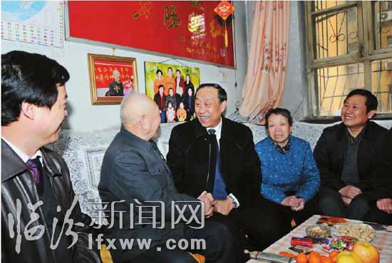 2月5日上午,市委书记谢海在尧都区看望慰问困难企业、老红军、困难群众等,为他们送去了党和政府的问候与关怀,并把慰问品、慰问金交到他们手中。市委常委、秘书长王文英陪同。市民政局、总工会等有关单位负责人随同。本报记者 赵俊堂 摄