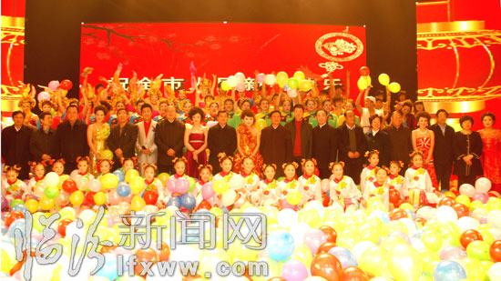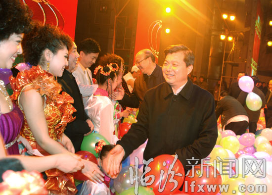 我市四套班子领导与全体演职人员亲切握手。