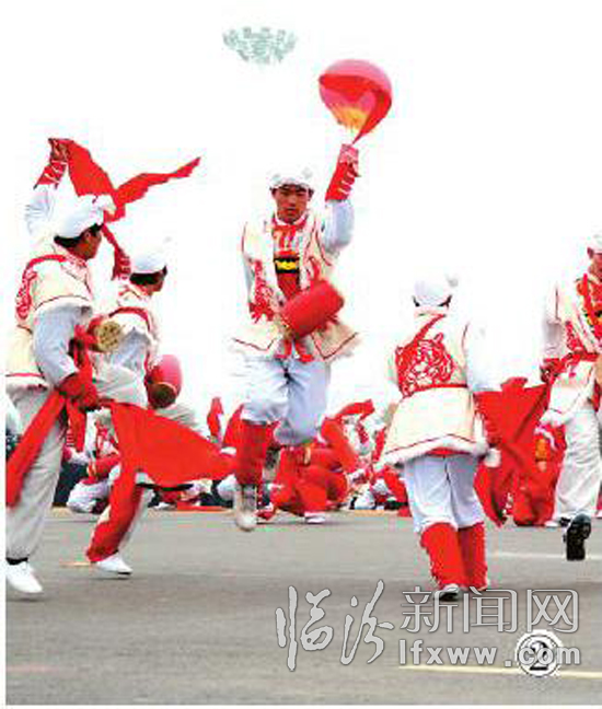 图为精彩的腰鼓表演。本报记者 闫锐鹏 李自强 摄