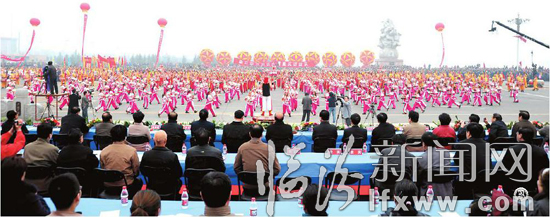 图为市领导与各界人士共同观看锣鼓大赛。本报记者 闫锐鹏 李自强 摄