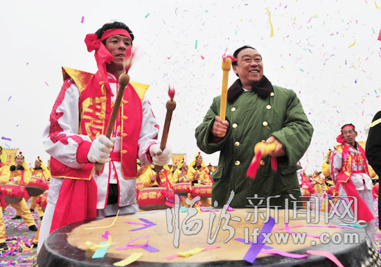 2010年2月28日(正月十五)上午10时,彩球满天,鲜花吐艳,人山人海,锣鼓喧天。由临汾市委宣传部、临汾市文化广播新闻出版管理局主办的“2010年元宵节吉祥临汾锣鼓大赛”在临汾市锣鼓大桥隆重举行。临汾市委书记谢海,副书记郭新民,临汾市四大班子主要领导与数万市民在一起观看了丰富多彩的锣鼓大赛。