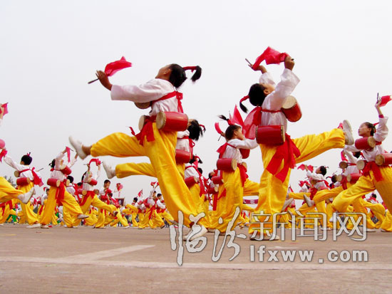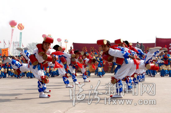 尧都区志强钢铁厂800人的《赤壁威风锣鼓》拉开了锣鼓大赛的序幕,威武雄壮的锣鼓打出了临汾儿女的豪情,铿锵有力的鼓点敲出了富裕农民的喜悦。整齐划一的队伍、气势宏大的鼓乐为临汾市民献上了新春的厚礼,以其惊天动地的气势、排山倒海的音韵,博得全场喝彩;乡宁县女子锣鼓队带来的太重锣鼓欢快喜庆,敲响了数万村民们积极向上奔小康的精神风貌;尧庙镇大韩阴阳鼓队献上的阴阳鼓别具一格,奏出了尧都文化的骄傲。