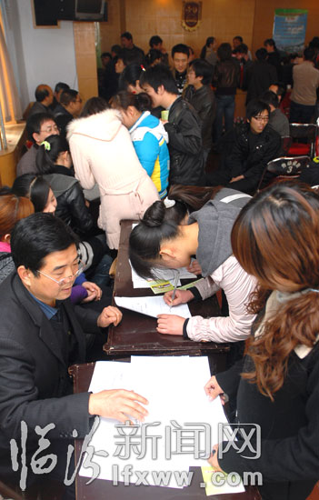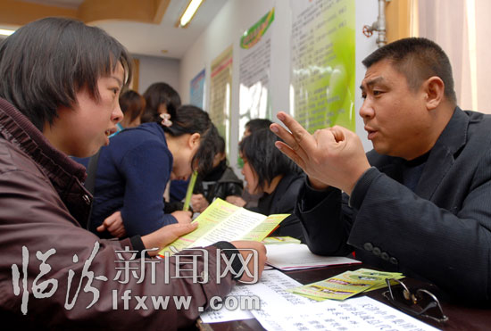 临汾新闻网讯 3月15日,求职者在襄汾县“春风行动”暨人力资源交流洽谈会上了解用工信息。当日,襄汾县举办“春风行动”暨人力资源交流洽谈会,20余家用工单位提供制造、冶炼、服装加工、装卸等1000余个岗位,吸引了大量求职者前来应聘。 记者 闫锐鹏 摄
