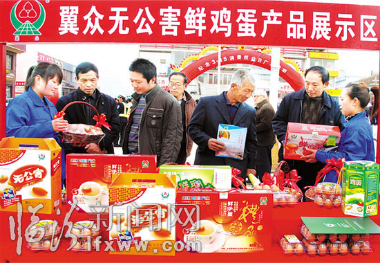 3月15日当天,翼城县工商局和县消协组织执法部门和优秀民营企业在府前广场设立消费维权咨询服务台和商品展示区,集中接待消费者的咨询和投诉。(本报记者 李自强 摄)