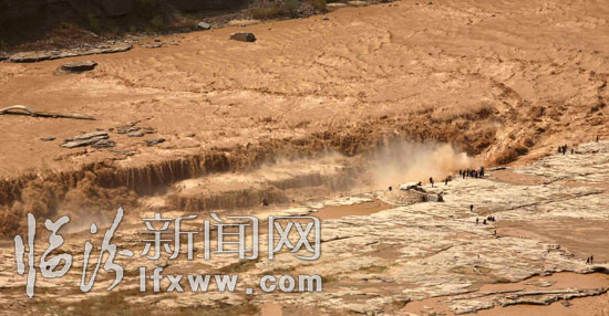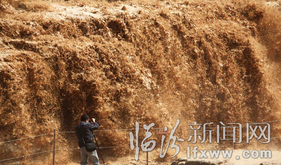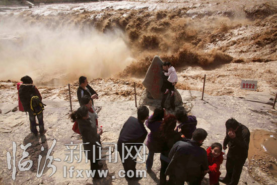 临汾新闻网讯 4月1日,受桃花汛影响关闭了三天的黄河壶口景区今日开放,迎来众多的游人观看这难得的美景。 3月31日,壶口瀑布的桃花汛洪峰顺利的通过了景区,当时景区内的观景台全部被洪水淹没,上午10时左右,洪水退去,景区开放。此时黄河壶口瀑布展现出难得的美景,瀑布群一个连着一个非常壮观,据当地人讲,这样的景观已有十多年没有出现过了,可能持续一个星期才会退去。(张 旦)