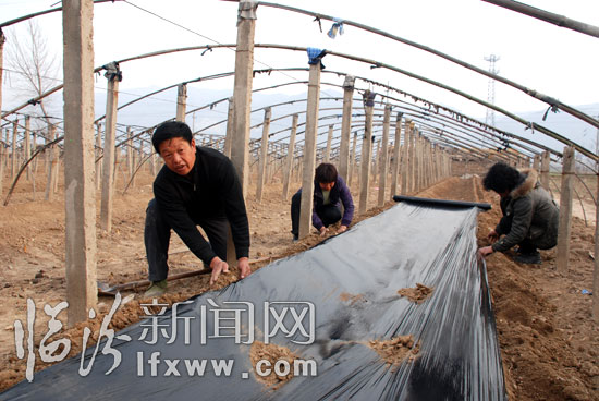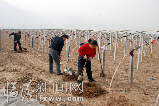 临汾新闻网讯 日前,在侯马市上马办张少村,村民们正在整理土地,搭大棚,为种植西瓜、移栽西瓜苗做准备。张少村是侯马市远近闻名的西瓜种植村,该村今年用南瓜嫁接的西瓜种植面积将近达到2000亩。 记者 李自强 摄