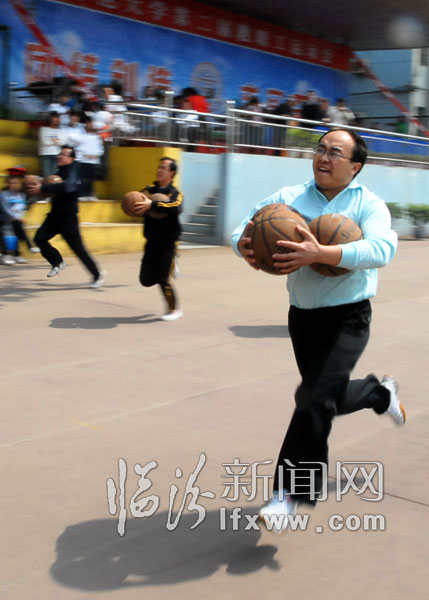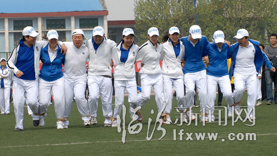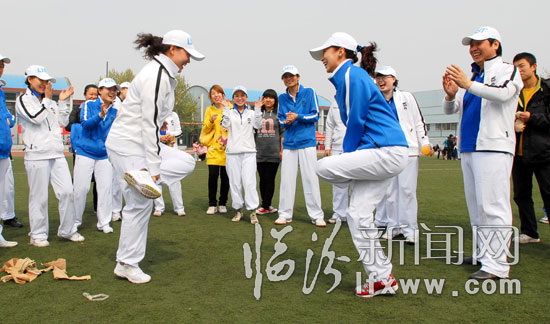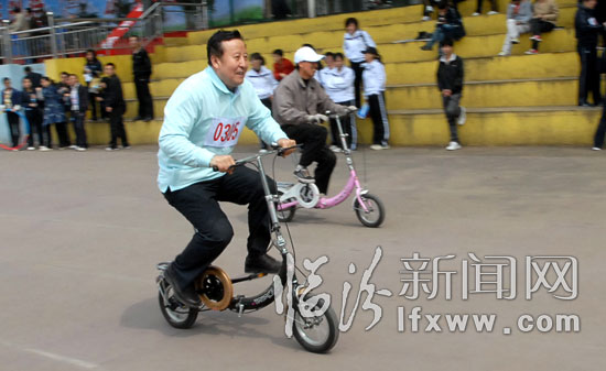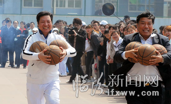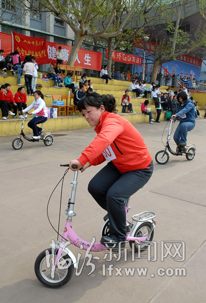 临汾新闻网讯 4月24日,山西师范大学的教职工正在参加趣味比赛。当日,山西师范大学举办了主题为“健康快乐迎五一”的趣味运动会,全校2000余名教职工参加了斗鸡、小轮车快慢跑、齐心走、跳大绳等10个项目的比赛,在运动中迎接五一劳动节的到来。(记者 闫锐鹏 摄)