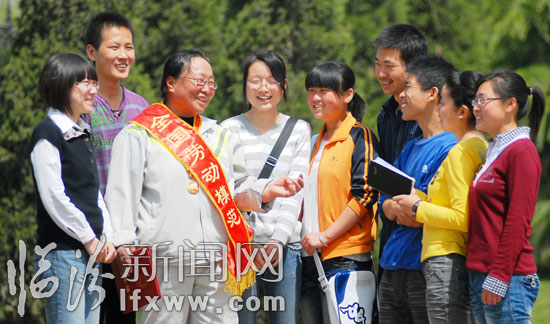临汾新闻网讯 4月29日,参加了全国劳模大会的市环卫局东城环卫所清扫工沙永玲在为山西师大临汾学院的学生讲述自己的经历。沙永玲在平凡的岗位上一干就是26年,她用自己坚强的意志感染了广大青少年学生,该院学生表示,作为80、90后的大学生,要追踪劳模足迹,学习劳模的工作和奉献精神,更好的服务社会。记者 闫锐鹏 摄