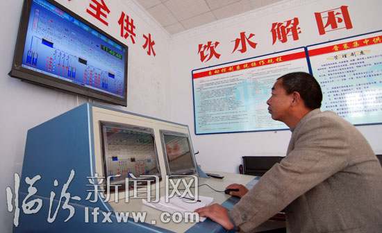 临汾新闻网讯 5月4日,南辛店集中供水站的工作人员在操控自动化供水系统。襄汾县着力打造民生工程,今年计划新建65处饮水安全工程,解决农村11.06万口人、9930余头大牲畜的饮水安全问题。 (闫锐鹏 刘利平 摄)