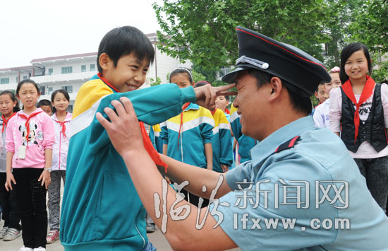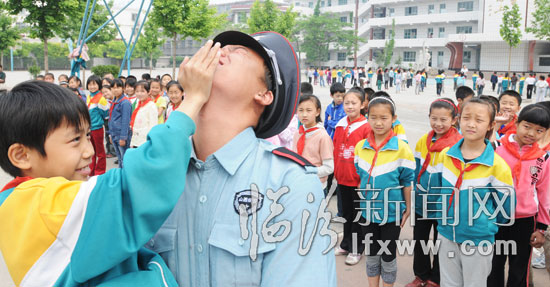 临汾新闻网讯 5月14日,临汾市第一小学的孩子在进行遭遇突发人身攻击时的反抗技巧训练。当日,临汾市保安公司组织200余名高素质的以退伍军人为骨干的保安力量,将陆续分赴市区各个中、小学进行校园及周边安全保卫巡逻,并对学生进行安全防卫意识、技巧培训等简易安全教育。(记者 李虎威 赵玉峰 摄)