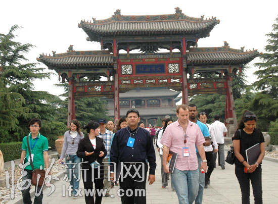 临汾新闻网讯 5月14日,来自美国、英国、日本、澳大利亚等10多个国家的旅行商考察团来临汾尧庙和华门参观考察,在参观完景点之后,他们对尧都深厚的历史文化产生了浓厚的兴趣,对景区独特的建筑特色赞不绝口。 旅行商考察团的好评也许能给临汾带来一次商机,特别是特色的文化旅游项目,他们希望有机会能和当地旅游部门进行洽谈、合作,共同投资开发当地具有特色的旅游项目。