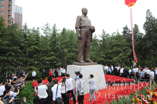 临汾新闻网讯 5月26日, 彭真铜像在山西省侯马市廉政文化公园揭幕。彭真铜像主体高度为5米,基座高度为2.5米,总高度为7.5米。其寓意为彭真同志献身革命、建设和改革开放事业的75年光辉历程。基座的台基长度为9.5米,台座高度为1.9米,分别代表彭真同志95年的人生历程和19年的故乡成长阶段。