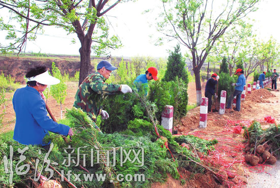 在“爱我临汾、树我形象、建我家乡”活动中,浮山县林业部门与公路、农业等单位积极响应号召,扩充境内临浮路沿线绿化带,以绿化家乡环境为载体,引深主题活动。 (记者 李自强 摄)