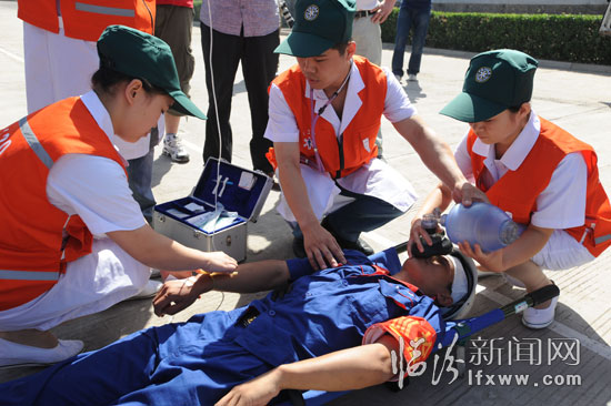 6月18日,医疗救援人员抢救“伤员”。临汾新闻网记者 李虎威 摄