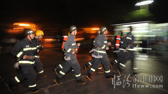 6月19日晚,消防队员在进行人员疏散。临汾新闻网记者 李虎威 摄