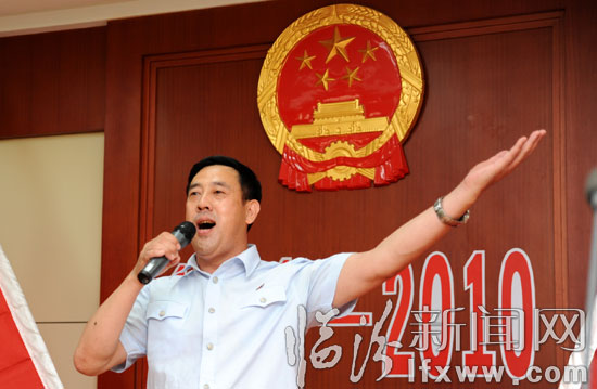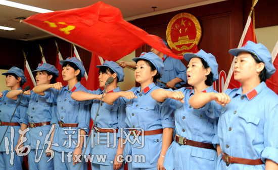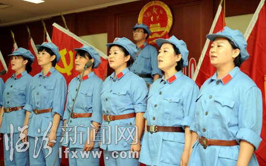临汾新闻网讯 6月25日,尧都区法院的法官们在表演节目。当日,尧都区法院举办了“庆七一,颂党恩”联欢活动,来自全区法院系统的广大法官、干警自编自导自演,通过红歌联唱、舞蹈、诗朗诵等节目讲述身边优秀党员和先进事迹,为党献上一场别致的汇演与颂歌。(本网记者 闫锐鹏 摄影报道)
