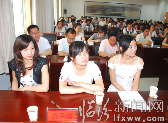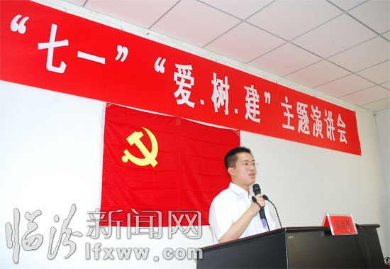 临汾新闻网讯 为迎接建党八十九周年,6月29日上午,临汾日报社举办了主题为“迎七一” “爱、树、建”的演讲比赛,由10名编辑记者组成的参赛选手参加了比赛。比赛中,选手们紧扣主题,围绕自身工作经历,用饱满的精神状态,激昂的语言,和鲜活感人的实例、富有感染力的演讲讲述了一个个来自于我们身边的鲜为人知的优秀新闻工作者的事迹。参赛选手们激昂的神采,动情的演讲博得了阵阵掌声。(记者 李自强 摄)