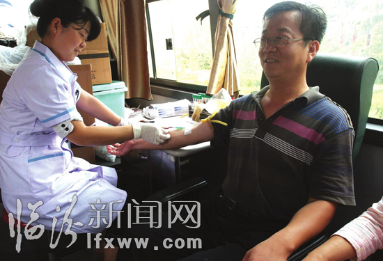 连日来的高温天气导致献血人数减少,夏季又是医院用血高峰期,医院临床用血告急,我市中心血站的存血量全线下降。 7月4日,我市一家日用品临汾店组织100多名职工和热心顾客组成志愿者队伍来到鼓楼广场采血点无偿献血,缓解用血压力。