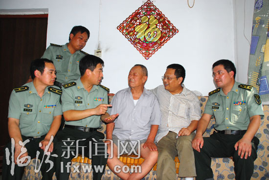 人武部干部慰问解放战争和抗美援朝老红军李学元。