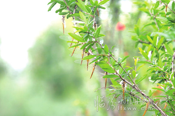 昨天上午,市区汾河边彩虹桥下出现一道亮丽的景观——上万只蜻蜓来此“聚会”,它们穿梭在树枝和行人之间,相互追逐嬉戏,吸引了不少市民驻足观看。记者看到,除空中飞舞的外,树梢上也“挂”满了蜻蜓,远看就像一排排的小辣椒,非常整齐这些聚集的蜻蜓引起了市民的种种猜测。一位市民说:“前天这里也有蜻蜓,但没这么多,今天突然出现这么多,不知是什么原因。”随后,记者去电市地震局,该局工作人员表示近期无异常。有关专家表示,天气变化是蜻蜓增多的原因,雨前或雨后都可以促进蜻蜓繁殖,汾河岸边的绿化也给蜻蜓提供了良好的生长环境。 (记者 赵文家 赵亿平 摄影报道 )