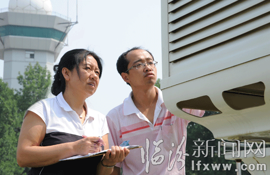 8月11日,临汾市气象台的工作人员在做观测记录。