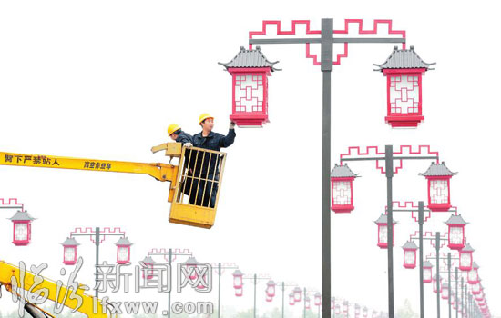 连日来,在古城公园建设工地,市路灯管理所的工作人员在检修路灯。开工以来,广大建设者攻坚克难,严抓质量,精心施工,目前,工程建设进入收尾阶段,即将向市民开放。