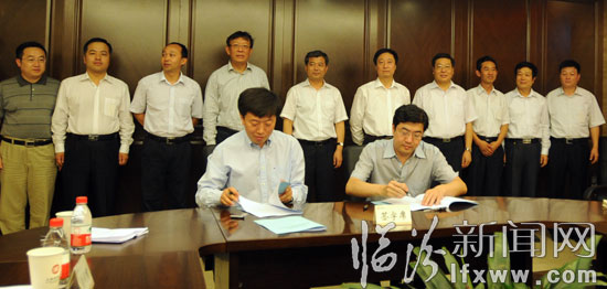 图为汾西县人民政府县长毛跟云和山西国际电力集团副总经理薛文晔签约。记者 李虎威 摄