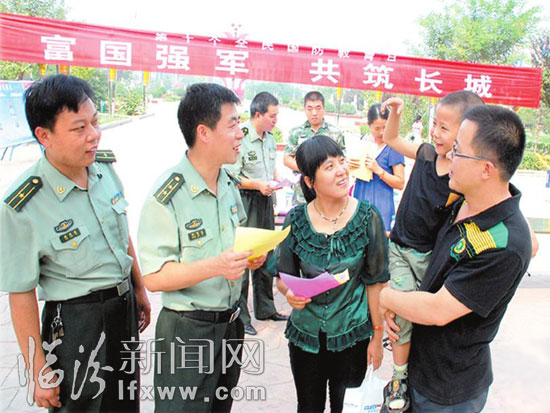 “富国强兵 共筑长城”是今年9月18日国防教育日的宣传主题。连日来,我市各级驻临部队官兵和人武部工作人员以群众喜闻乐见的形式和人性化服务开展了丰富多彩的宣传活动,既增强了活动的吸引力,又拓展了宣传覆盖面。